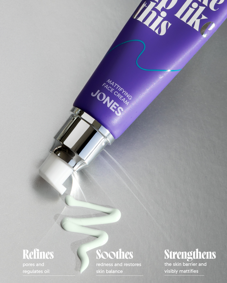 Deze lichte, voedende gezichtscrème brengt je huid in balans, hydrateert zonder glans toe te voegen en helpt puistjes onder controle te houden: ideaal voor een gecombineerde tot vette huid. De formule is 100% veganistisch en voelt zacht en ademend aan op de huid. Roodheid vervaagt zichtbaar, poriën lijken verfijnd en je teint blijft de hele dag fris en mat. Verrijkt met niacinamide, een probioticumcomplex en granaatappelextract: ingrediënten die de talgproductie reguleren, je huidbarrière versterken en je een rustige, gezonde gloed geven.